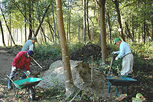 地域の里山が年々荒廃する中、不審者や不法投棄ごみが増え、周辺からの苦情で有志に声掛けし、ボランティア組織を立ち上げ里山ため池の景観を活かし、健康づくりの森や憩いの森づくりで里山の環境改善に取り組む。 |