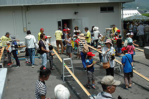 八本松小学校おやじの会、子ども会と協議し、子供たちに楽しみながら巣箱の部品を組立させ、設置を一緒にする事により、森林整備の意義や自然の動物・植物に目を向けさせその素晴らしさを実感させることが出来た。 - イベントとしてソーメン流しや綿菓子、かき氷、ウクレレ演奏など提供して参加者に1日楽しく過ごしていただき喜ばれました。